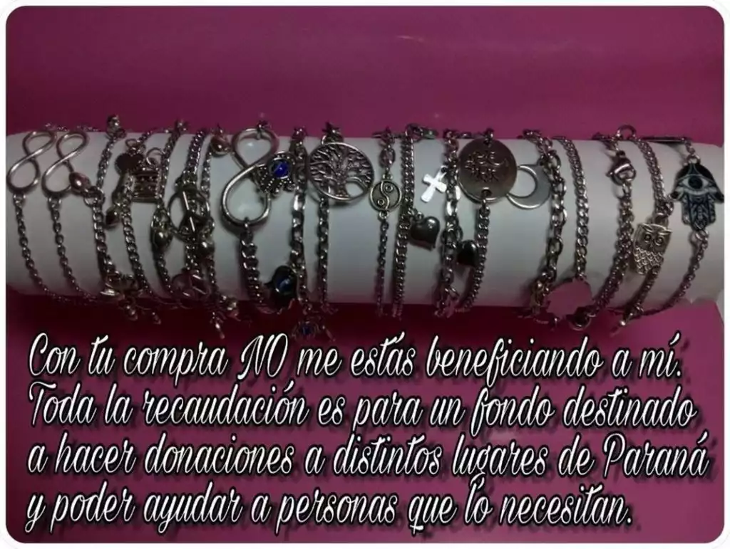 En cuanto a los accesorios, los mismos están hechos con acero quirúrgico, los precios no se encuentran actualizados, pero según las últimas publicaciones una pulsera cuesta entre 400 y 500 pesos y collar entre 200 y 250 pesos. "Con tu compra no me estas beneficiando a mí. Toda la recaudación es para un fondo destinado a hacer donaciones a distintos lugares de Paraná y poder ayudar a personas que lo necesiten", posteó tiempo atrás Galarza en su cuenta personal de Facebook, aclarando que todo lo recaudado se destinará a un fin benéfico.
