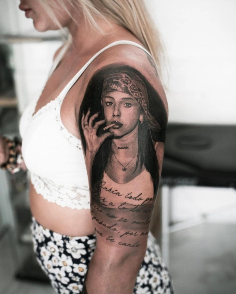 Nicki Nicole con sus más de 9 millones de seguidores en todo el mundo causa sensación entre los jóvenes y adolescentes. Tal es así que una fiel admiradora de España decidió convertirse en la primera persona en portar su cara en el hombro. Elena Atadill Fischer, fue quien decidió retratar una imagen de la artista en la que tiene un pañuelo en su cabeza y sostiene un cigarrillo en la boca.