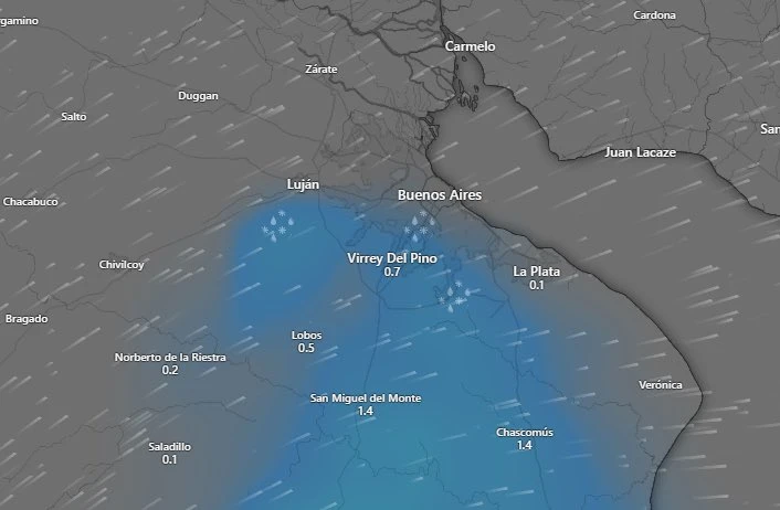 En paralelo, algunos modelos internacionales como el GFS y el ECMWF llegaron a mostrar condiciones marginales para la aparición de nieve débil en áreas al sur de la provincia de Buenos Aires y en sectores del segundo cordón del conurbano, como Virrey del Pino o Brandsen. Allí, si la humedad acompaña, podría darse algún episodio aislado durante la madrugada o las primeras horas del día.