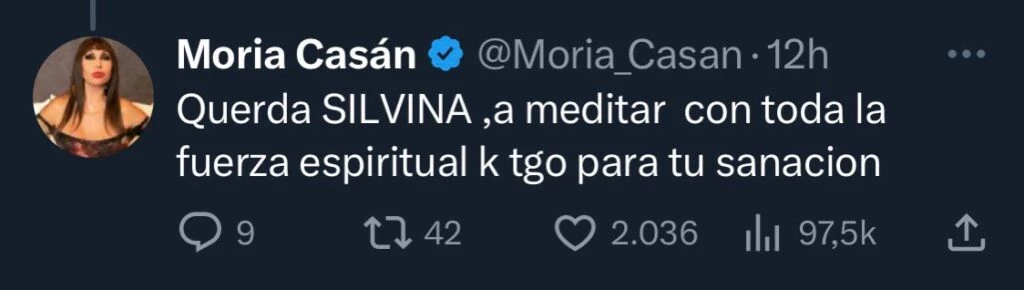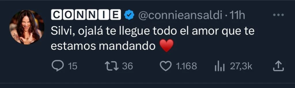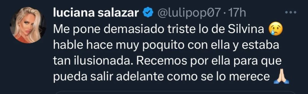 A través de las redes sociales, muchas figuras del medio fueron dejando sus mensajes en una cadena de oración por la salud de Silvina Luna. Todos ellos le están enviando energías positivas para que su salud mejore pronto.