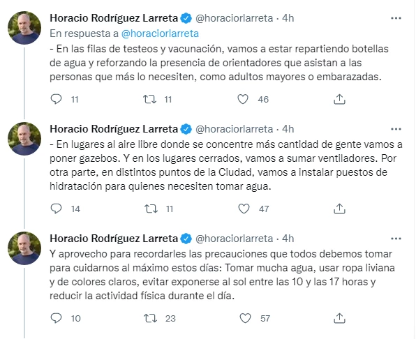 En medio de la ola de calor que azota a todo el país, Horacio Rodríguez Larreta presentó una serie de medidas para luchar contra las altas temperaturas que se esperan para mitad de semana. Además, habló sobre la situación sanitaria de la Ciudad.