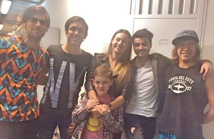 Pampita y su hijo Bautista posan con los integrantes de Márama. Foto: Twitter.