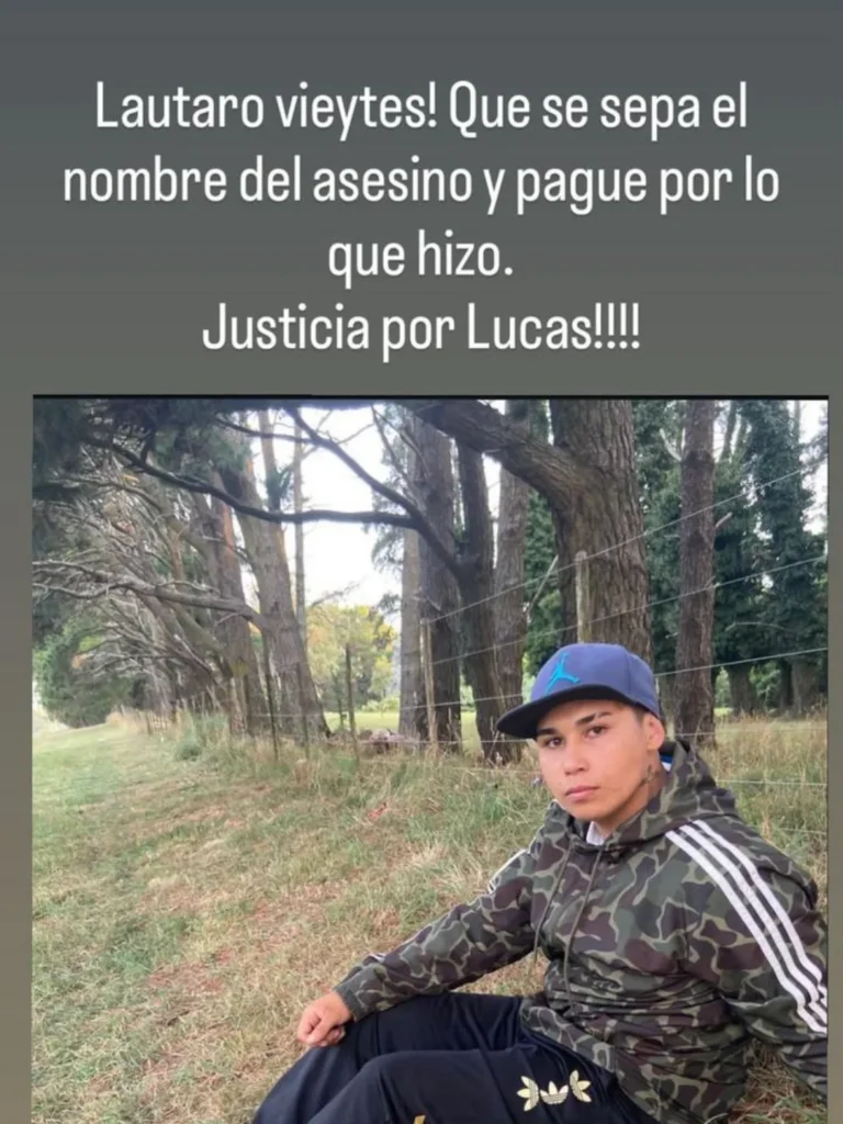 En otra historia, la joven fue aún más directa y reclamó que se conociera públicamente la identidad del acusado. “Lautaro vieytes! Que se sepa el nombre del asesino y pague por lo que hizo. Justicia por Lucas!!!!”, escribió, sin ocultar su indignación.
