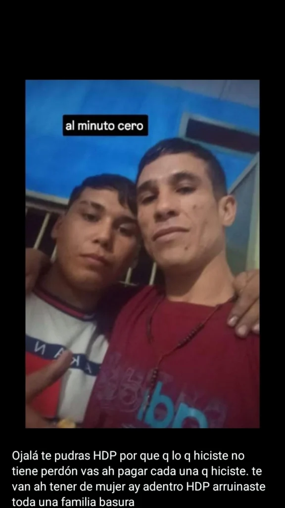 En una última publicación, la joven volvió a difundir la imagen de los dos hombres abrazados y acompañó la foto con un mensaje cargado de furia: “Ojalá te pudras HDP porque lo que hiciste no tiene perdón, vas a pagar cada una que hiciste... arruinaste toda una familia basura”.