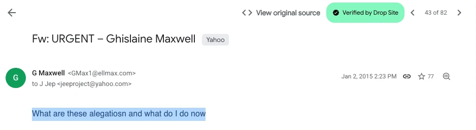 A esta altura vale traer a colación un detalle no menor: mientras Epstein aseguraba que había otro caso "mucho más grave" que el suyo e intentaba bajarle el precio a lo él, Ghislaine ha llegado a escribirle el 2 de enero de 2015 con desesperación: "¿Que son estas acusaciones y qué hago ahora?".