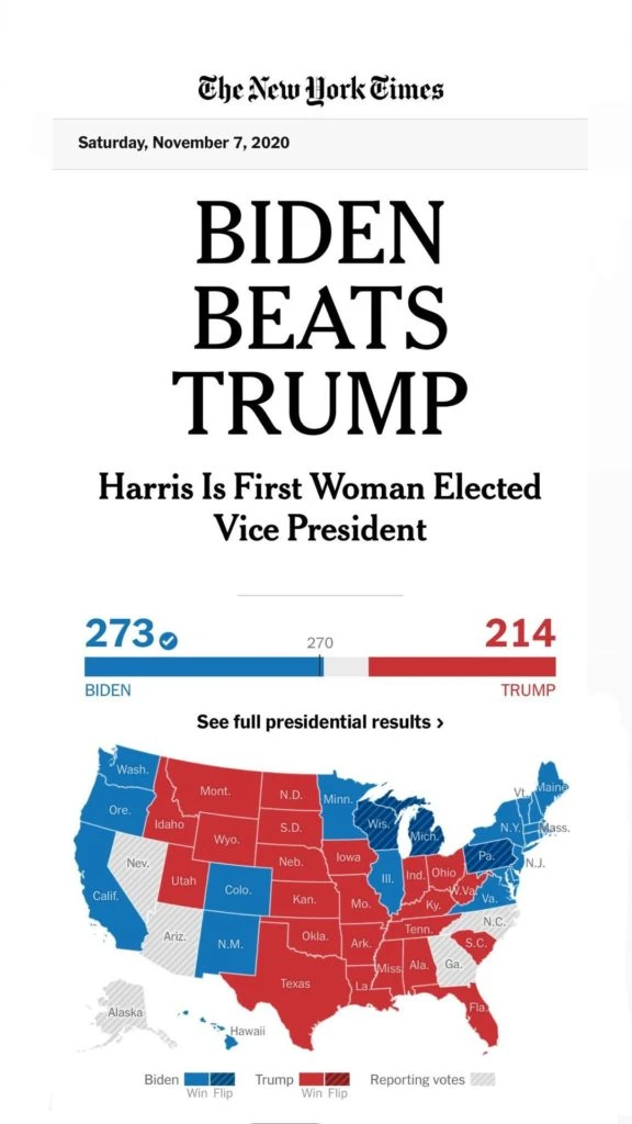 Pero no es la única que ya hizo pública su alegría tras el triunfo de Biden. Jennifer Aniston, que lleva semanas haciendo campaña para que los ciudadanos norteamericanos se registren para votar y ha compartido su postura en múltiples ocasiones, también celebró. Eligió la imagen que posteó The New York Times para anunciar el triunfo del candidato demócrata y la complementó con un clásico suyo: un video de Rachel, su personaje en Friends, festejando.