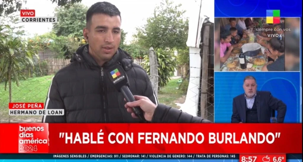 "O sea, en este momento no está Burlando con ustedes, pero no descartás que pueda estar. ¿por qué ahora no?", indagó Doman. A lo que el hermano de Loan expresó: "Porque están trabajando nuestros abogados, en el momento en que lo necesiten, lo van a llamar".