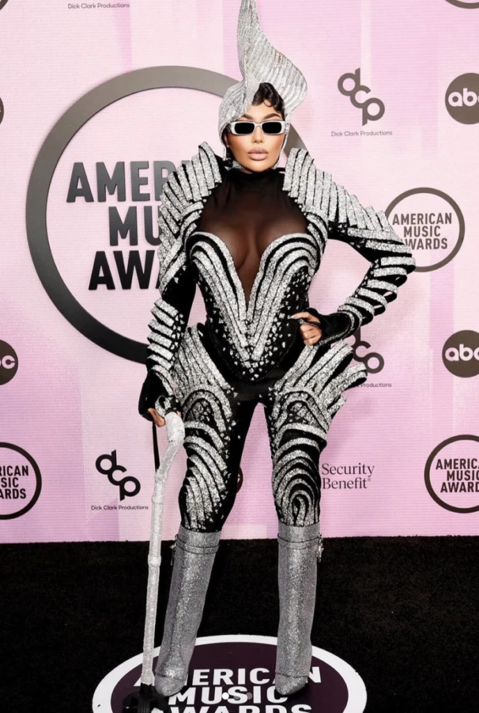 Por su parte, tras cinco años sin asistir al mega evento, la estrella Pink lució en la alfombra roja de los American Music Awards 2022 un minivestido vintage de Bob Mackie con sandalias.