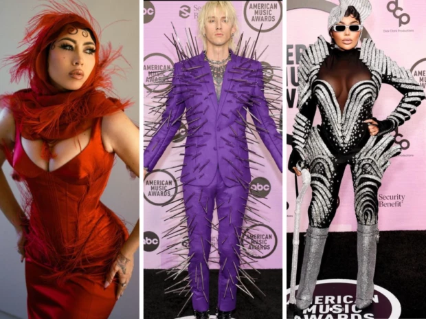 El músico Machine Gun Kelly tuvo una gloriosa noche en los American Music Awards 2022, luego de hacerse con el premio de Artista favorito rock. Además de recibir el premio y agradecer a los suyos, el exitoso cantante también impresionó por su extravagante traje morado, que tenía incrustadas diversas barillas metálicas que simulan púas. Adam H. Ballheim fue el encargado de vestir al famoso intérprete de temas como "Rap Devil" y "Emo Girl".
