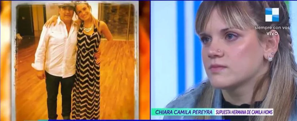 Chiara Camila Pereyra (21) se presentó ayer por la tarde al programa de América Tv, A la tarde, ya que asegura ser hija de Horacio Homs, el padre de Camila Homs y ex suegro de Rodrigo De Paul. Según explicó la joven ha intentado en distintas oportunidades ponerse en contacto con el sindicalista pero éste la habría ignorado sistematicamente. “Quiero conocer mi identidad”, aseguró al aire.