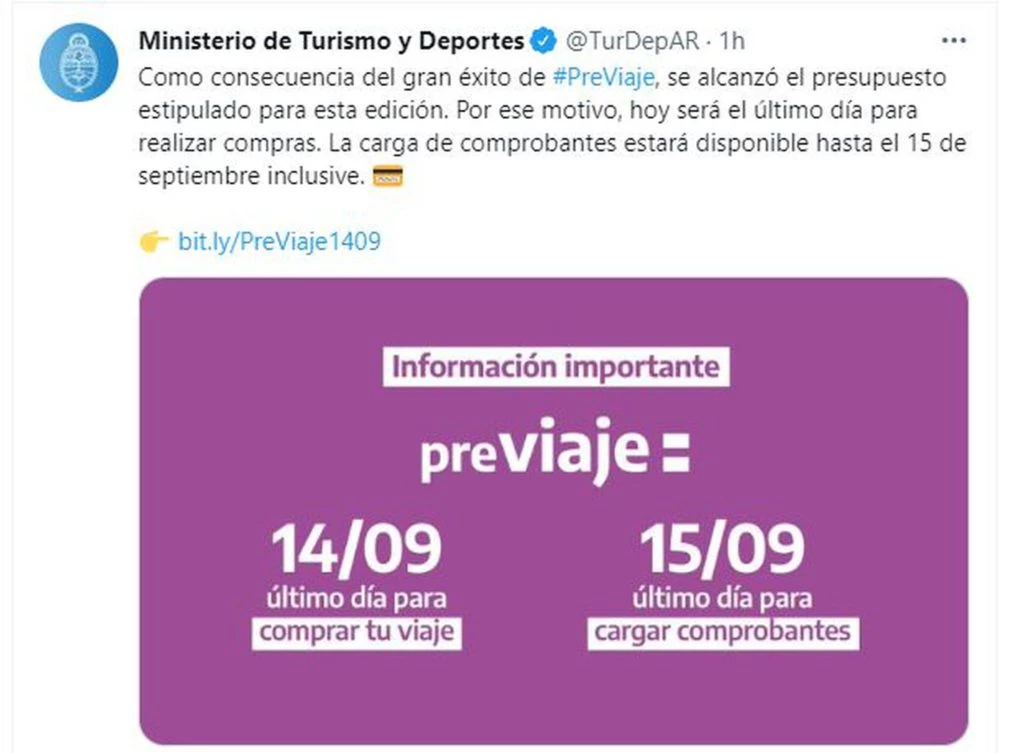 Desde el Ministerio de Turismo explicaron por sus redes sociales que ya se alcanzó el presupuesto establecido para esta etapa del programa de incentivos al turismo nacional.