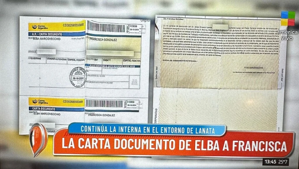 Y mientras la producción del ciclo mostraba al aire la carta documento en cuestión, ella añadía: "Las explicaciones que dirime Elba son que no habría plata, y la gente que está cerca de Lanata dice que no es así...".