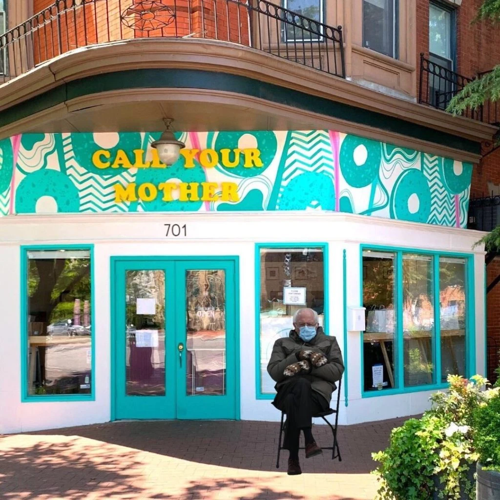 El 20 de enero, desde la cuenta oficial de Call Your Mother Deli celebraron que alguien hubiera llevado a Bernie Sanders delante del local. El negocio de despacho de bagels llama la atención por su fachada rosa y fue otro más de los spots donde se vio la imagen del senador, convertida en meme desde el día de su asunción en el Congreso.