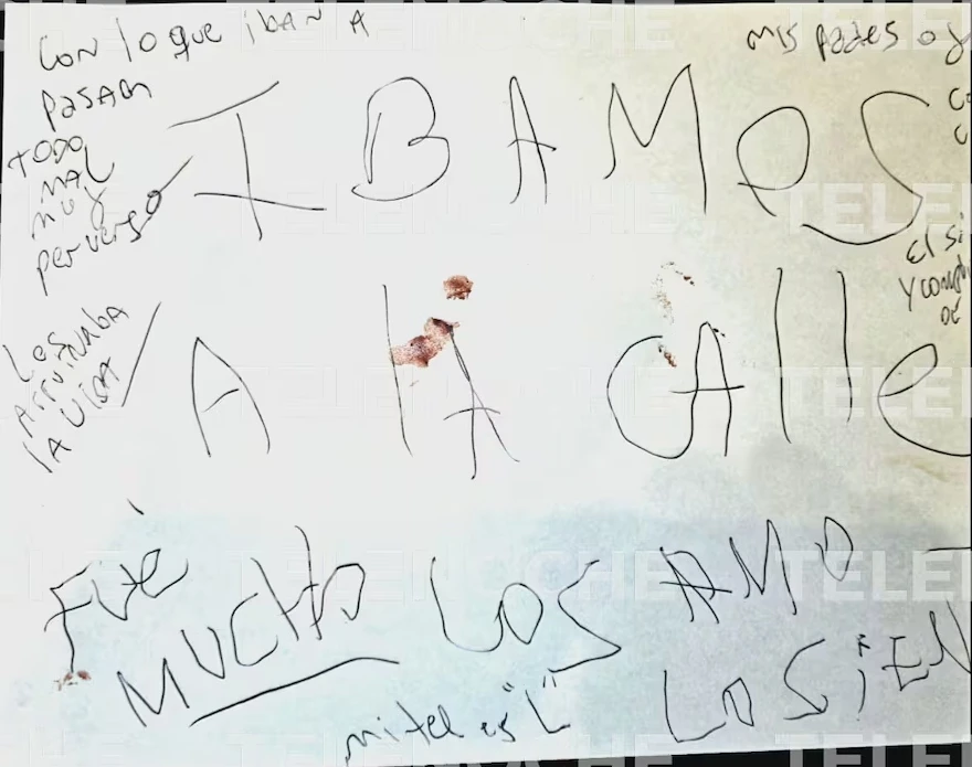 Lluego de esto, Laura habría escrito la única nota que estaba en el departamento que decía las siguientes frases incompletas: "Con lo que iban a pasar”; “Todo mal, muy perverso”; “Los arruinaba la vida”; “Fue mucho”; “Íbamos a la calle”; “Mis padres”; “Él sí”; “Los amo”; “Lo siento”.