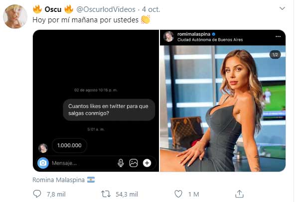 En vistas del rechazo de Malaspina, el twittero se autoimpuso un desafío: "10 mil likes y le organizo un asado al pibe que juntó un millón de likes para salir con la bruja de Malaspina que lo terminó clavando".