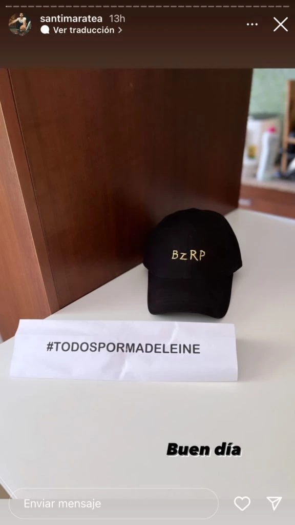 En las últimas horas, el joven oriundo de Ramos Mejía, le envió a Santi Maratea su gorra original con el sello BZRP para que sorteara entre todas las personas que hicieron su aporte a la campaña por Madeleine. Por su parte, la Selección Argentina, en medio de los preparativos para el Mundial de Qatar 2022, le hicieron llegar una camiseta oficial con el diez de Messi firmada por todos los integrantes del equipo, con el mismo propósito.
