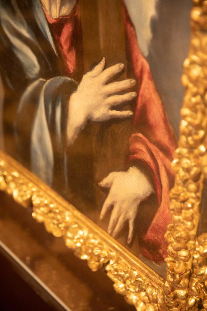 “Vinieron del Museo del Prado a estudiar la obra y descubrieron que en esta zona se ven las manos tiesas en una primera capa y están pintadas por encima las manos laxas que se repiten en las otras 5 pinturas de Jesús con la cruz a cuestas”, afirma Marcos.