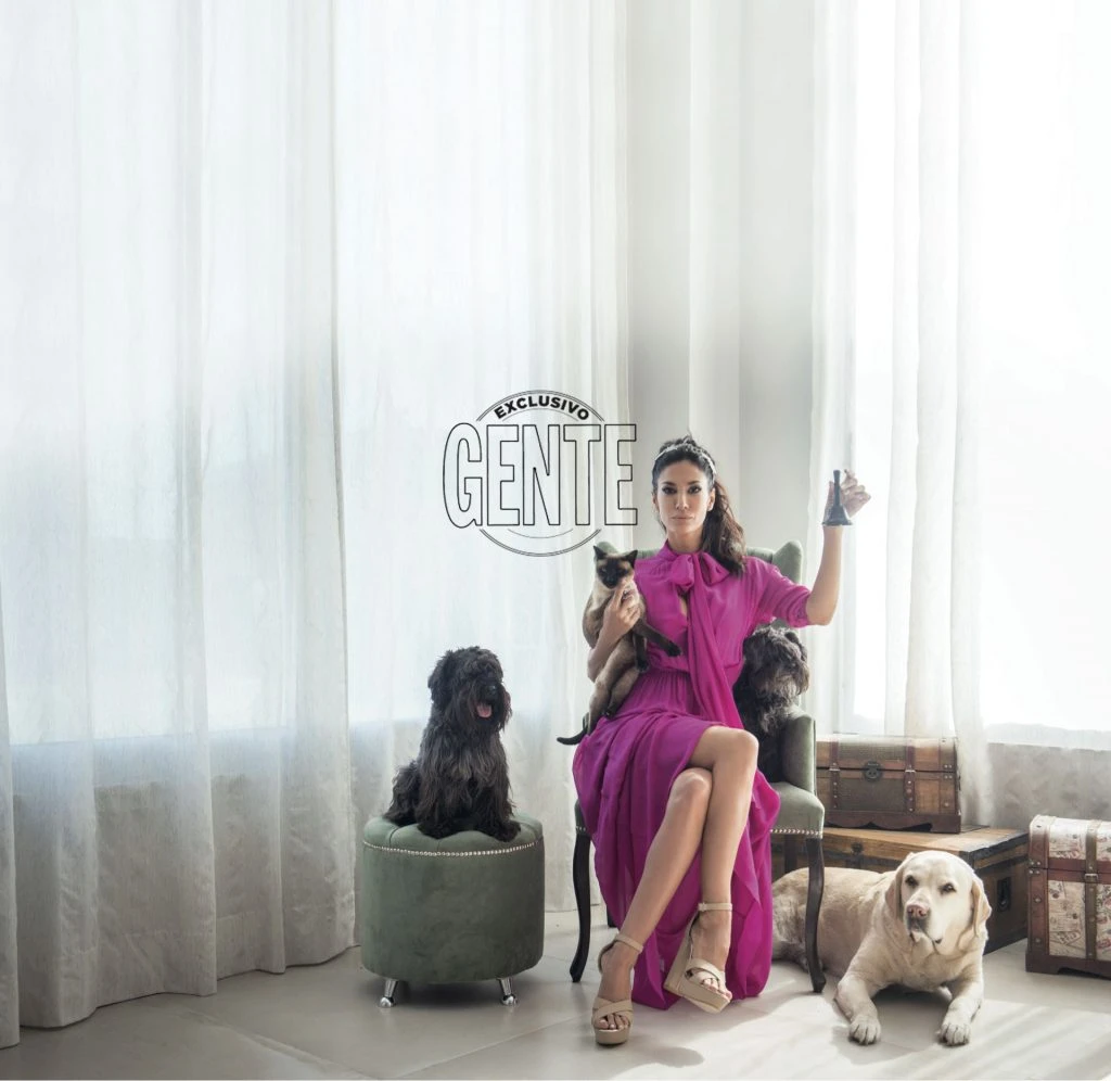 Su amor por los animales lo heredó de sus padres y, sobre todo, de su abuela materna, que era rescatista. Desde chica levanta y da en adopción perros y gatos heridos o abandonados, tanto que en el baúl de su auto lleva un kit de rescate. “Me encantaría abrir un refugio”, confiesa mientras abraza a sus cuatro “hijos” y se suma a una producción que combina moda, teatralidad y mucha ternura.