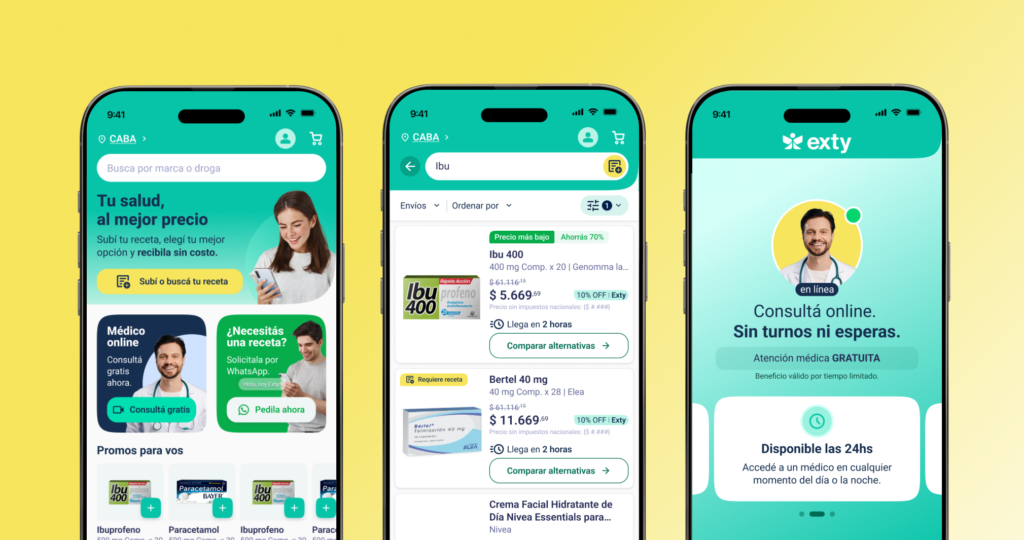 Exty permite acceder a medicamentos bajo receta, solicitar recetas a médicos matriculados y realizar teleconsultas en el momento, todo desde un mismo lugar. Además, las farmacias que están en Exty tienen cobertura con todas las obras sociales, incluyendo OSDE, Medicus, Swiss Medical y PAMI, lo que amplía significativamente su alcance.