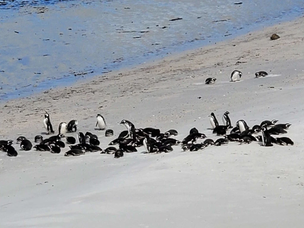 En efecto, si se hace zoom en la foto se puede ver que las manchas negras que se divisan en la playa es una colonia de pingüinos, mientras que en las aguas flotan las características algas “kelp”, de donde proviene el apelativo “kelper” para referirse a los habitantes de las islas.