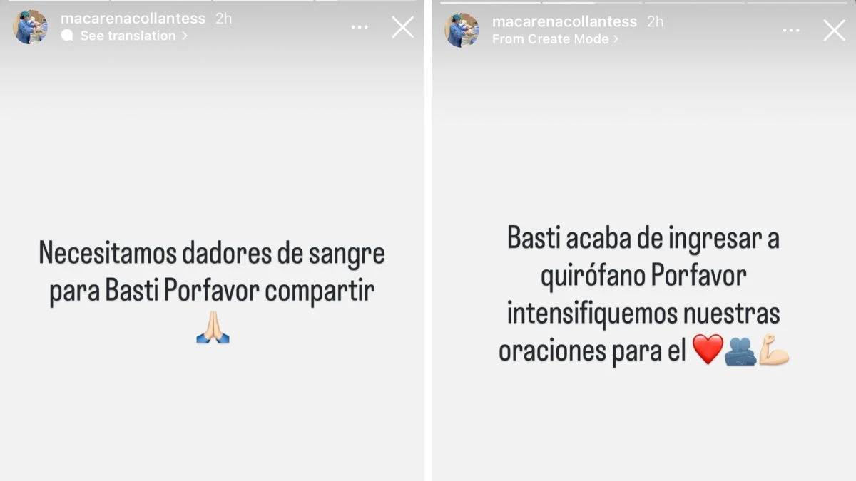 Macarena, además de compartir el mensaje, pidió que quienes siguen el caso intensifiquen las oraciones por Bastián mientras atravesaba el procedimiento.