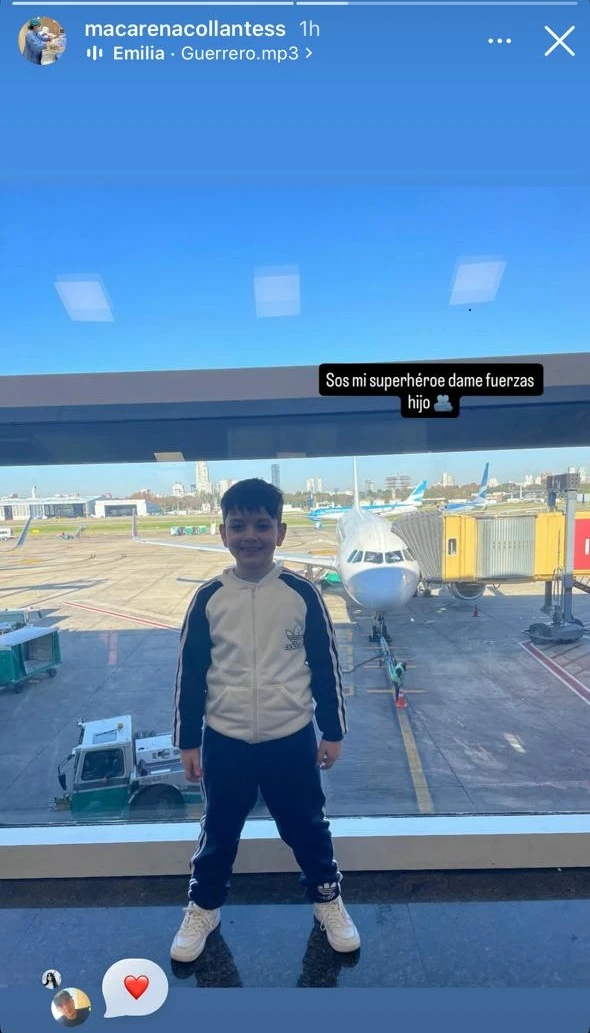 A través de sus historias de Instagram, la madre de Bastián compartió una imagen del pequeño y escribió una frase conmovedora: “Sos mi superhéroe, dame fuerzas hijo”.