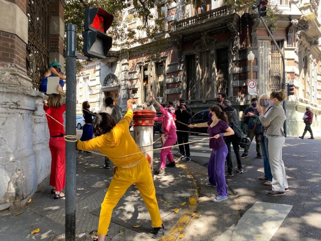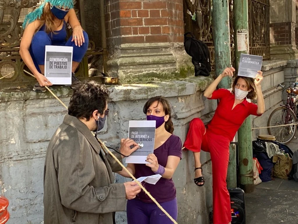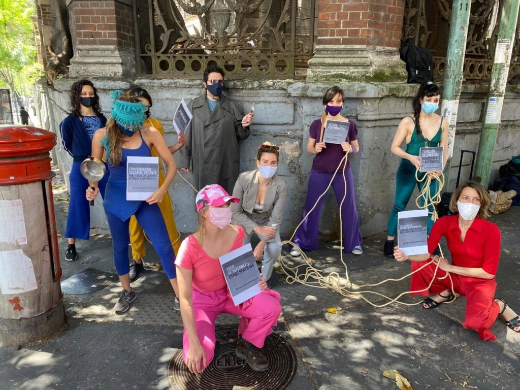 Ante la situación de emergencia en el sector, actores, actrices e intérpretes de diferentes disciplinas y puntos del país nucleados en la Asamblea Nacional de Actrices, Actores e Intérpretes en Emergencia realizaron hoy, miércoles 14, una acción artística frente al Ministerio de Cultura de la Nación.