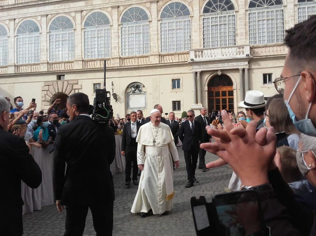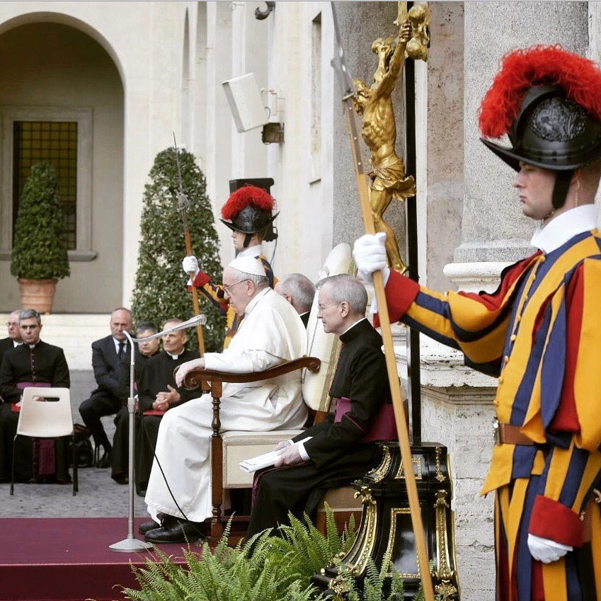 Y lo hizo, como lo seguirá haciendo a partir de ahora, en el patio de San Dámaso, dentro del Palacio Apostólico y no, como solía llevarlo a cabo, en la Plaza de San Pedro ni el Aula Pablo VI.