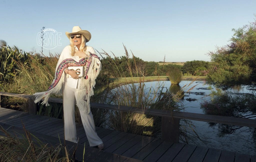 El outfit: total white, con camisa Carolina Herrera, pantalón Gucci, zapatos Miu Miu, anteojos Louis Vuitton, cartera Dolce & Gabbana, “y con toque cowboy, que está a la última”.