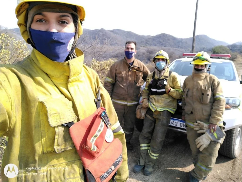 Tamara Toselli tiene 23 años y es una más entre muchos héroes silenciosos que trabajan sin descanso para frenar el avance del fuego en Córdoba. Además, estudia veterinaria en la Universidad Nacional de Río Cuarto. Está en segundo año y piensa especializarse en animales grandes: lo que más le gusta son los equinos. "Los amo desde chica. Cuando era niña tuve convulsiones y los caballos me sacaron adelante. Creo que por eso tengo una ocasión especial con ellos".