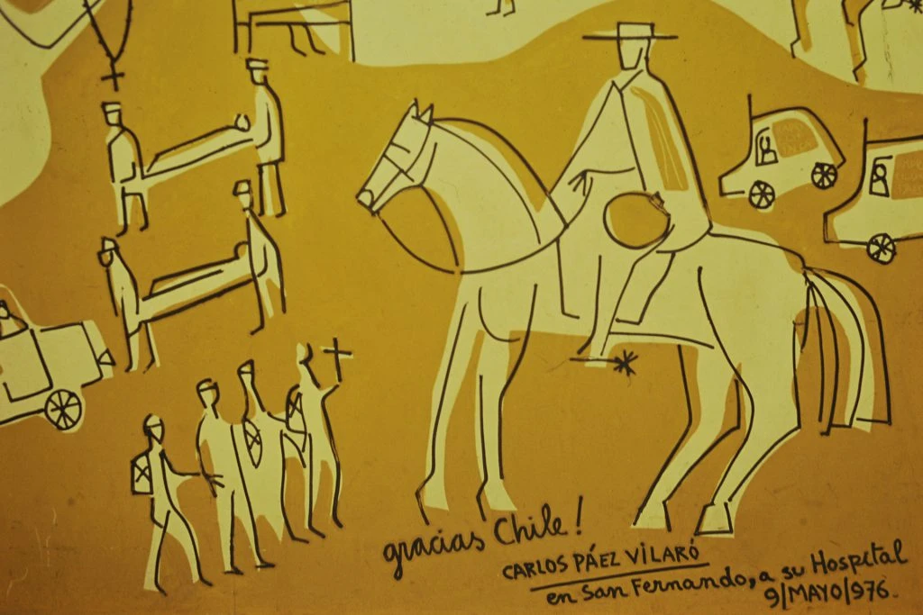 “Ese cuadro me lo regaló el pintor Páez Vilaró, el padre de Carlitos, uno de los chicos”, contó en entrevista con GENTE señalando la dedicatoria: “A Sergio Catalán, un muchas gracias de colores de este pingo chileno”.