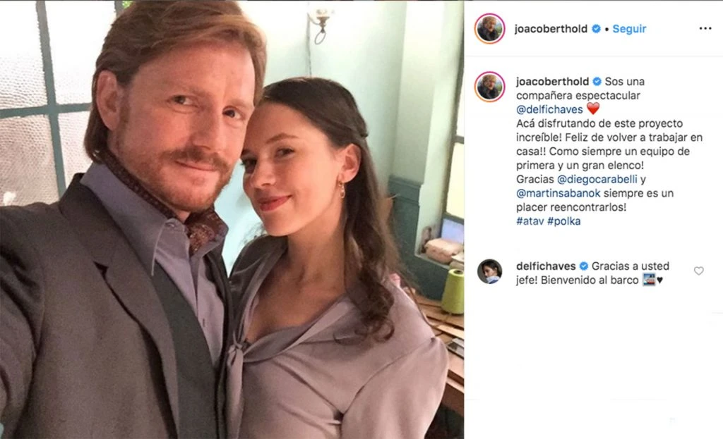 "Sos una compañera espectacular @delfichaves ❤️ Acá disfrutando de este proyecto increíble! Feliz de volver a trabajar en casa!! Como siempre un equipo de primera y un gran elenco!", escribió Berthold, quien también agradeció al productor Diego Carabelli y al director Martín Saban por la posibilidad de estar en la tira.