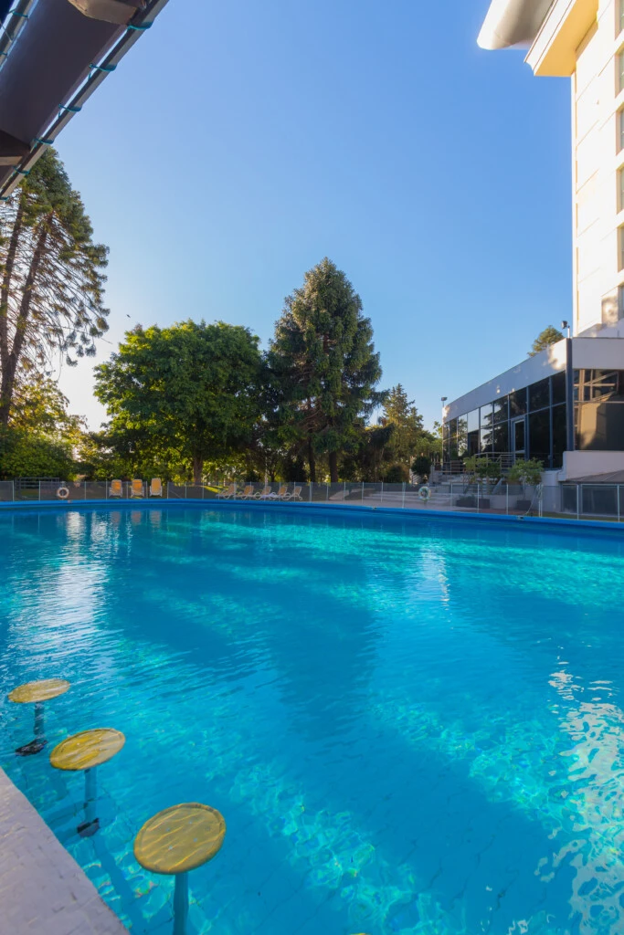 Para sumar al confort y al lujo se encuentran sus salones de convenciones, ubicados en el 8° piso del edificio; Zen Spa de más de 600M2, con gabinetes de tratamientos corporales y faciales, además de circuito hídrico con saunas, baño turco y duchas escocesas; dispone de piscina cubierta climatizada y una exterior de temporada estival, emplazada en su arbolado parque de más de 1200 M2.