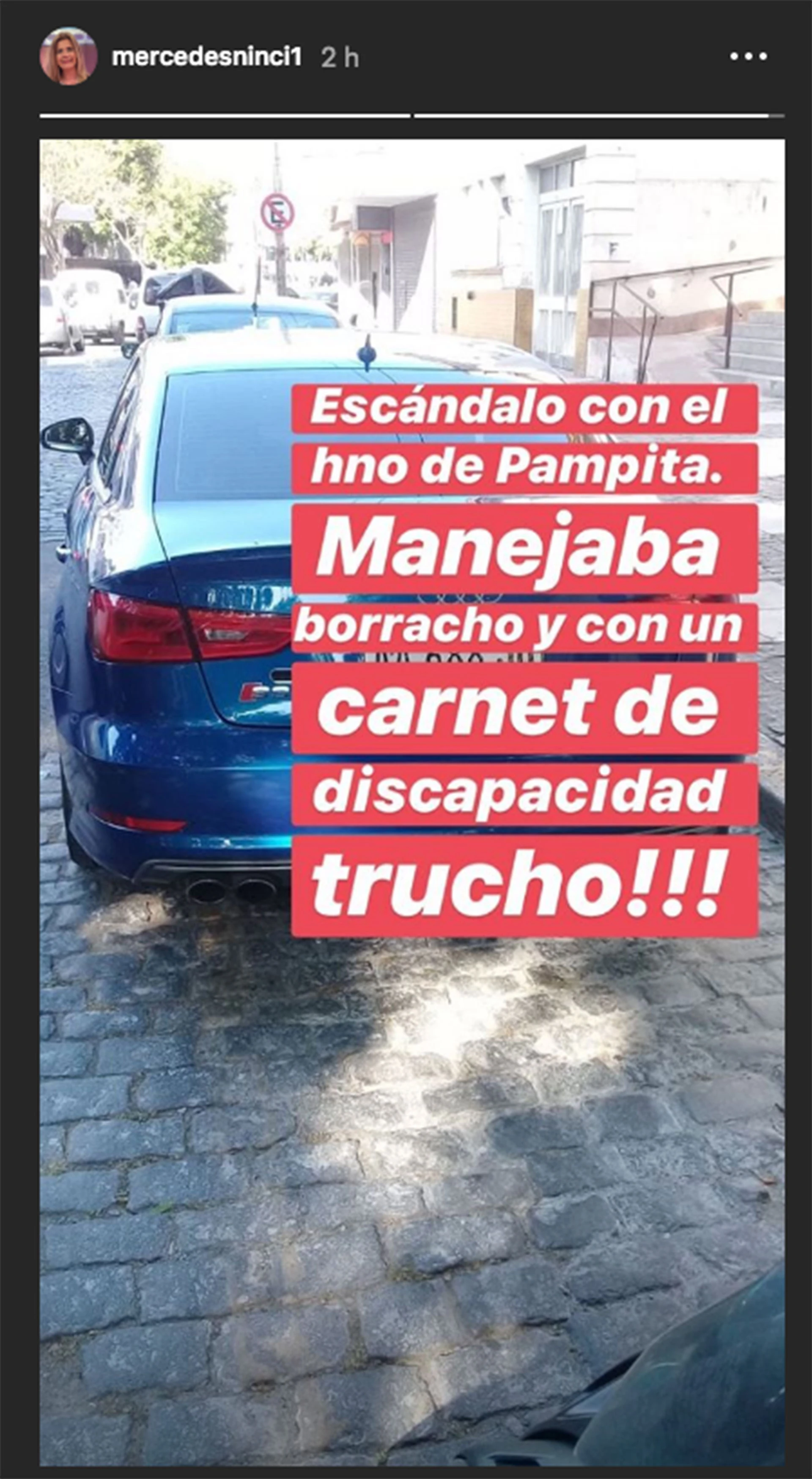 Al familiar de la modelo también se le hicieron las actas correspondientes por la utilización de un certificado apócrifo, debido a que en el momento en el que le tuvo que entregar sus documentos personales y los del auto a los oficiales, les dio una fotocopia de un certificado falso de discapacidad que, según informaron en esa emisora, estaba a nombre de su mamá.