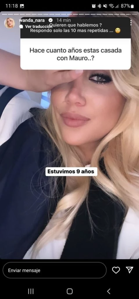 En el día de ayer, divertida como siempre, Wanda decidió proponerle a sus seguidores que le hicieran preguntas de todo tipo, y ella misma se ocupó de contestar esta mañana en redes sociales. Una muy peculiar decía, "¿Hace cuantos años estás casada con Mauro Icardi?". A lo que generando misterio Wanda Nara respondió: "Estuvimos 9 años".