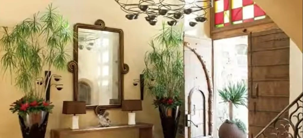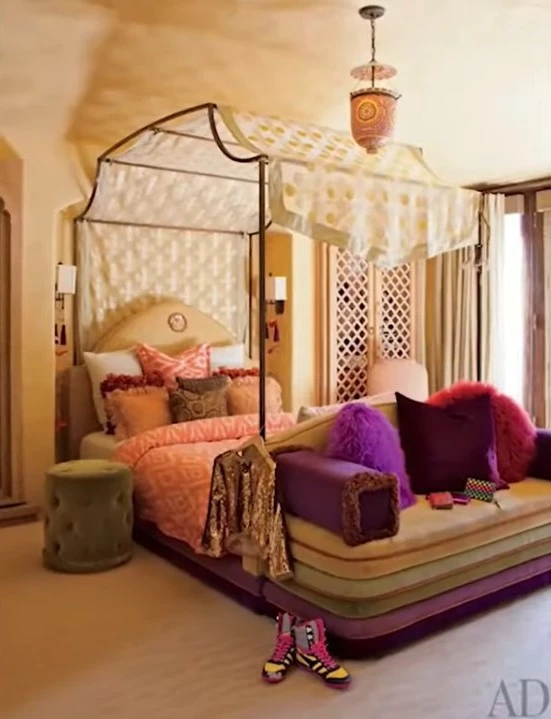 El interior de la casa está decorado con elementos procedentes y relacionados con la cultura de Medio Oriente, África, Estados Unidos y Asia. El terreno de 150 acres es aprovechado en su totalidad, tiene extensas áreas verdes y canchas que sobresalen mucho más que la casa principal.