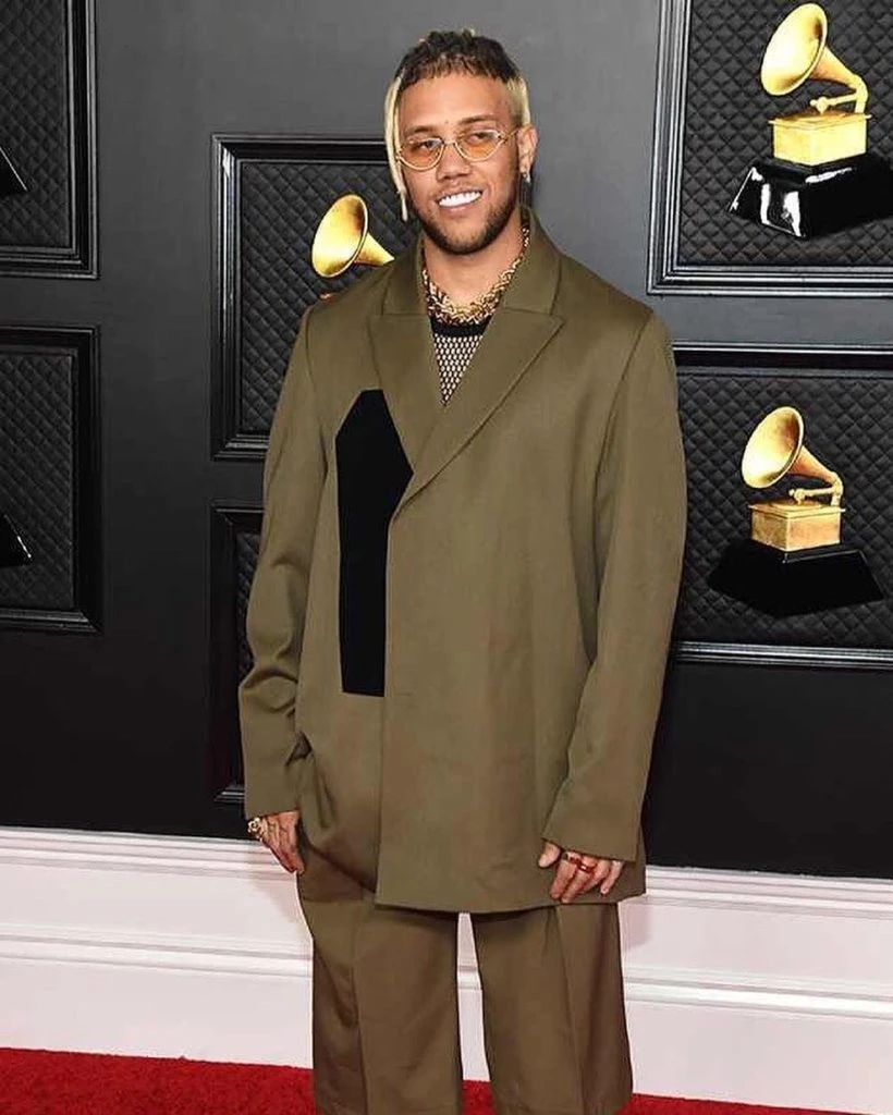 El puertorriqueño también dijo 'presente' sumándose a los looks particulares. El cantante eligió vestirse con una chaqueta verde militar, con un detalle en negro sobre su costado derecho. Con un pantalón del mismo color, le agregó cadenas de oro que adornaron su cuello.