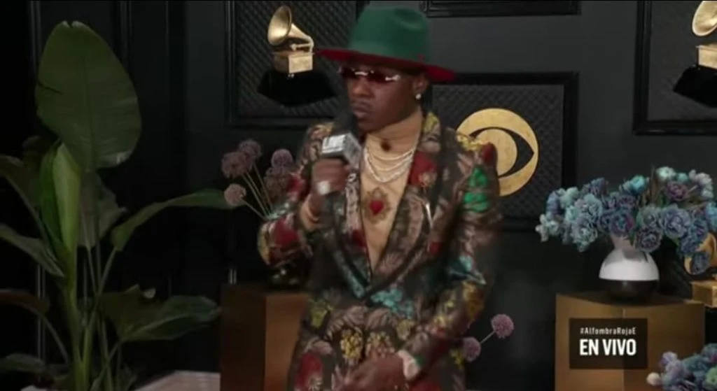 El cantante estadounidense fue otros de los que vivieron la entrega desde la comodidad de su hogar. En su caso, y más allá de no estar presente en el salón en el que se llevó adelante la entrega, se vistió para la ocasión. Con un trago en la mano, apostó por un saco colorido, una camisa naranja y una boina.
