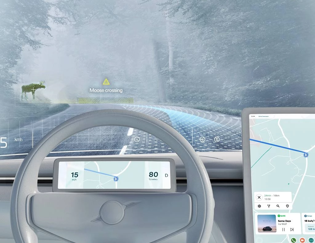 En una configuración de parabrisas, la tecnología permitiría crear una pantalla proyectada de gran campo visual capaz de generar una sensación de distancia a través de la superposición de objetos virtuales sobre el entorno del mundo real para generar una experiencia segura e inmersiva.