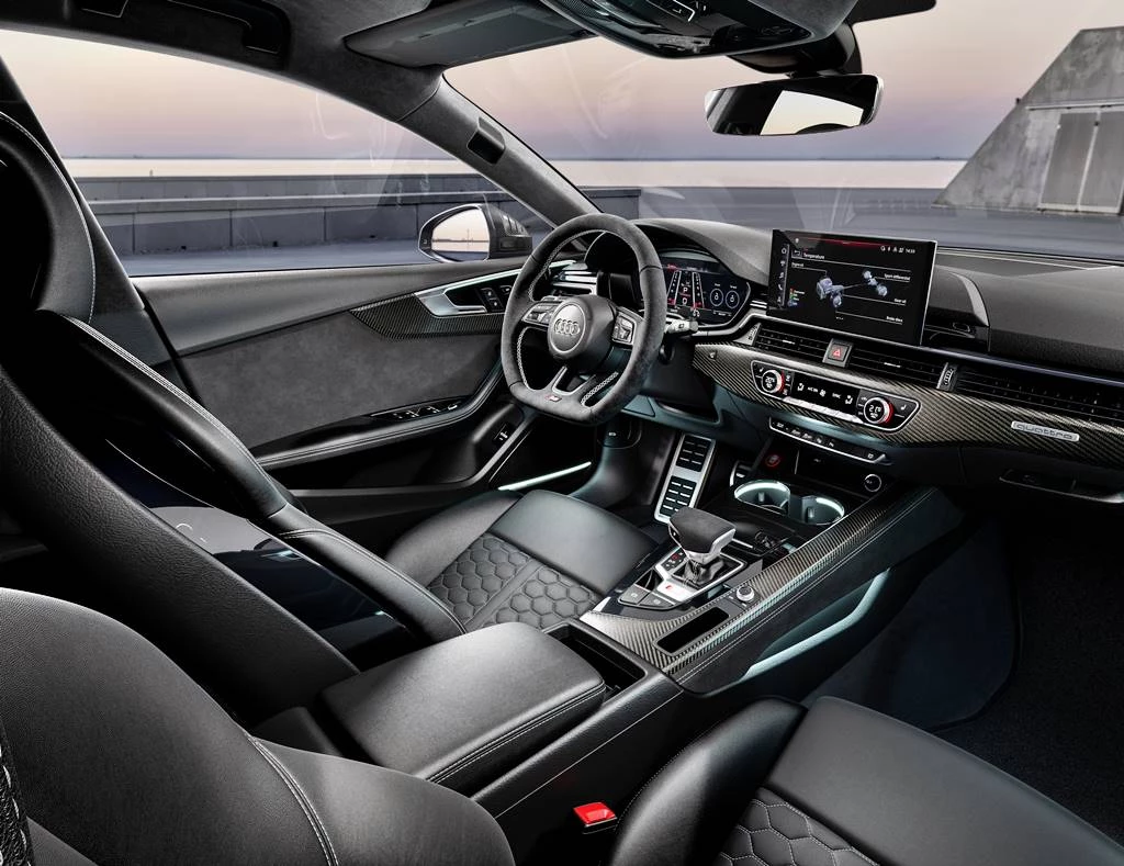 Por primera vez para el RS 4 y el RS 5 se puede elegir el color negro Sebring de efecto cristal para la carrocería. También se añade un exclusivo acabado en carbono mate para las carcasas de los espejos retrovisores exteriores y las aletas delanteras y laterales, así como para las taloneras y el embellecedor del difusor trasero; el resto de componentes brillan en color negro.