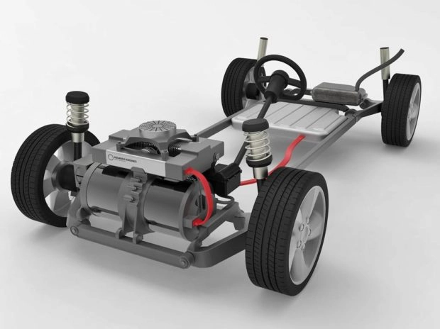 Este pequeño impulsor cuenta con una veintena de piezas móviles, entre ellas un pistón y dos cabezas de cilindro, pesa solamente diez kilos y está diseñado para generar electricidad en los vehículos híbridos enchufables o, eventualmente, mover un pequeño vehículo por si solo.