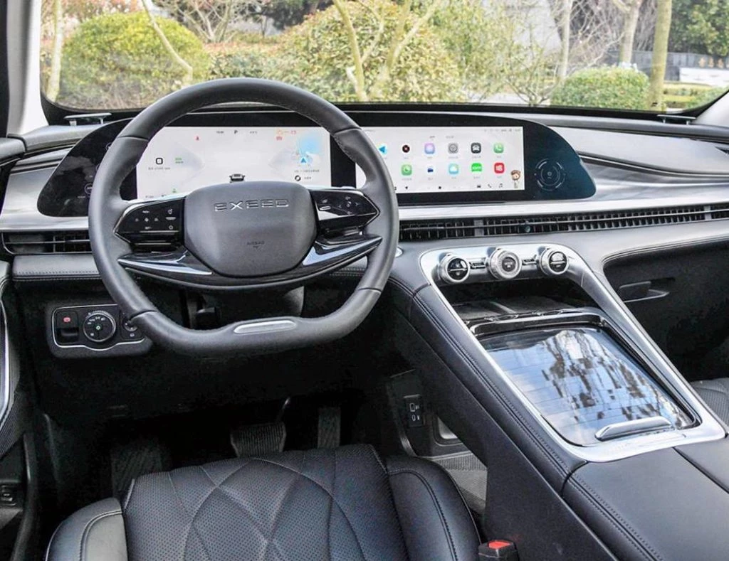 El interior del Yaoguang no se queda atrás en cuanto a lujo y tecnología se refiere. Cuenta con tapizados de cuero prespuntados, materiales de alta calidad al tacto y una consola central limpia con una pantalla dual curva de 24,6 pulgadas.
