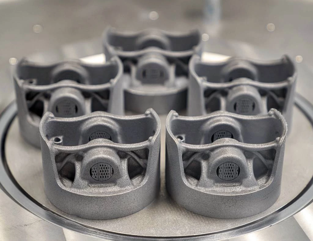 La impresión 3D permite que los pistones sean realizados con una estructura optimizada para las cargas que soportan. Como resultado, los pistones de este proyecto de avanzado desarrollo pesan un diez por ciento menos que los forjados de producción en serie. También tienen un conducto de refrigeración integrado y cerrado en la corona del pistón que no podría haberse hecho por métodos convencionales.