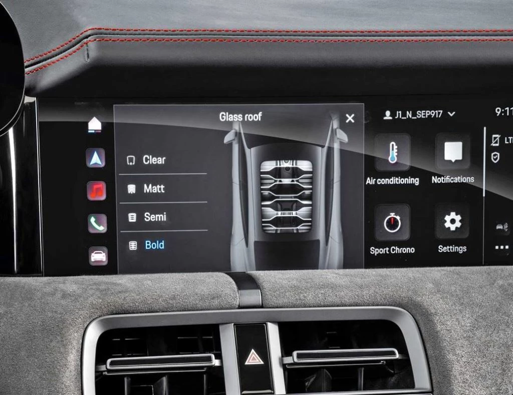 La marca alemana Porsche estrenó en el Porsche Taycan un innovador sistema que gradúa el ingreso de luz al interior del habitáculo que funciona mediante cristales líquidos ajustables eléctricamente.