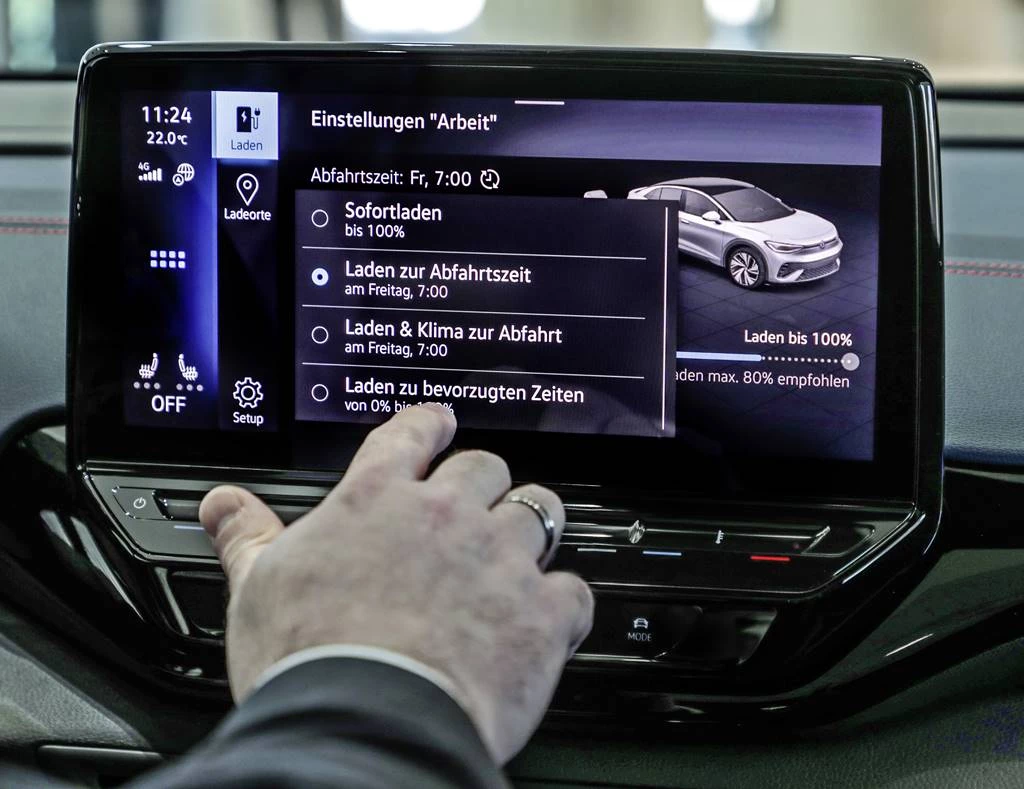 El menú de carga, que ahora aparece en la pantalla inicial de la gran pantalla táctil de los modelos ID., está estructurado de forma más informativa y clara. Para los trayectos largos, el calculador de rutas en línea del sistema de navegación crea una ruta inteligente de varias paradas.