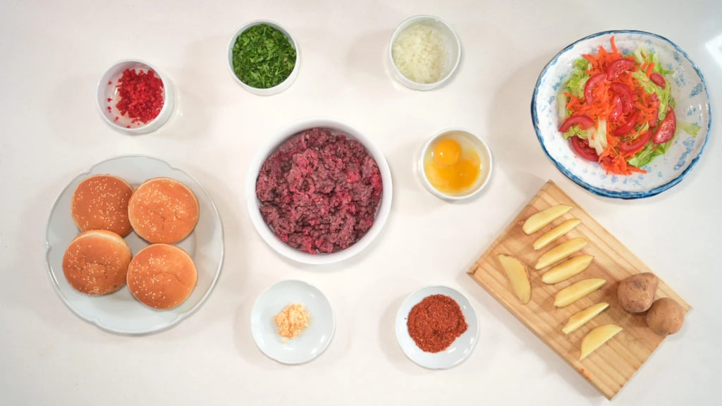 Para comenzar, primero chequear tener estos ingredientes: 1kg carne picada, 3 dientes de ajo, perejil, 2 huevos, 1/2 cebolla chica, picada o rallada, ½ morrón rojo, picado muy finito, sal, pimienta y ají molido. Con estas cantidades, y en solo 45 minutos, pueden salir entre 8 y 12 hamburguesas.