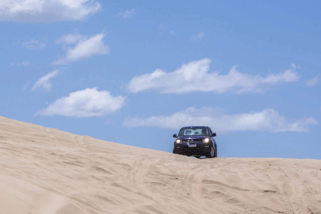 La Frontera, esa área de médanos, verde y mar ubicada en el norte de Pinamar, es famosa por varios motivos: el imposible acceso sin un vehículo 4x4, la falta de sonoridad de sus playas y las travesías off road que se llevan a cabo en el lugar. Parte de la propuesta de verano de Volkswagen Argentina se despliega con foco en las clínicas de manejo sobre arena bajo supervisión del equipo experto en Amarok.