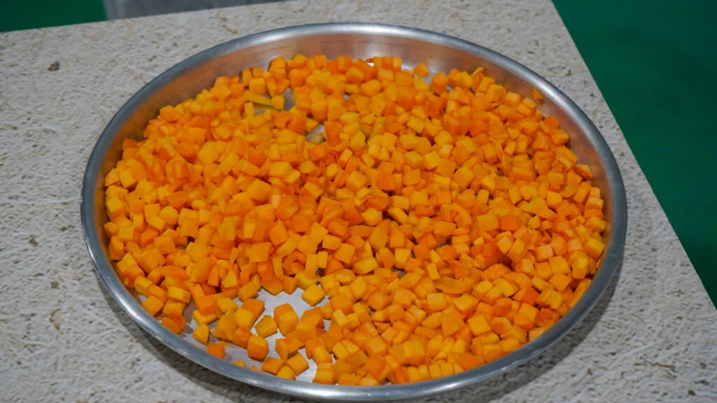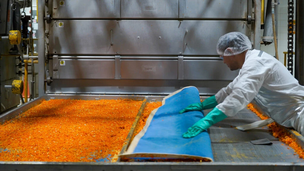 “El proceso de deshidratación que nosotros hoy tenemos consta de distintas etapas. En principio recibimos los vegetales directo de los agricultores con los cuales trabajamos, esos vegetales una vez controlados son recibidos y descargados acá, cuando están ok pasan a procesos de deshidratación. Tenemos etapas de lavado, de pelado, de partido. Luego seguimos con una etapa de selección manual para eliminar materiales extraños. Posterior seguimos con un cubeteado y picado y con una fase de deshidratación primaria para seguir con la etapa final y terminar de ajustar la humedad para envasar el producto”, comentó Ramiro Cabrera, Jefe de Planta Mendoza.