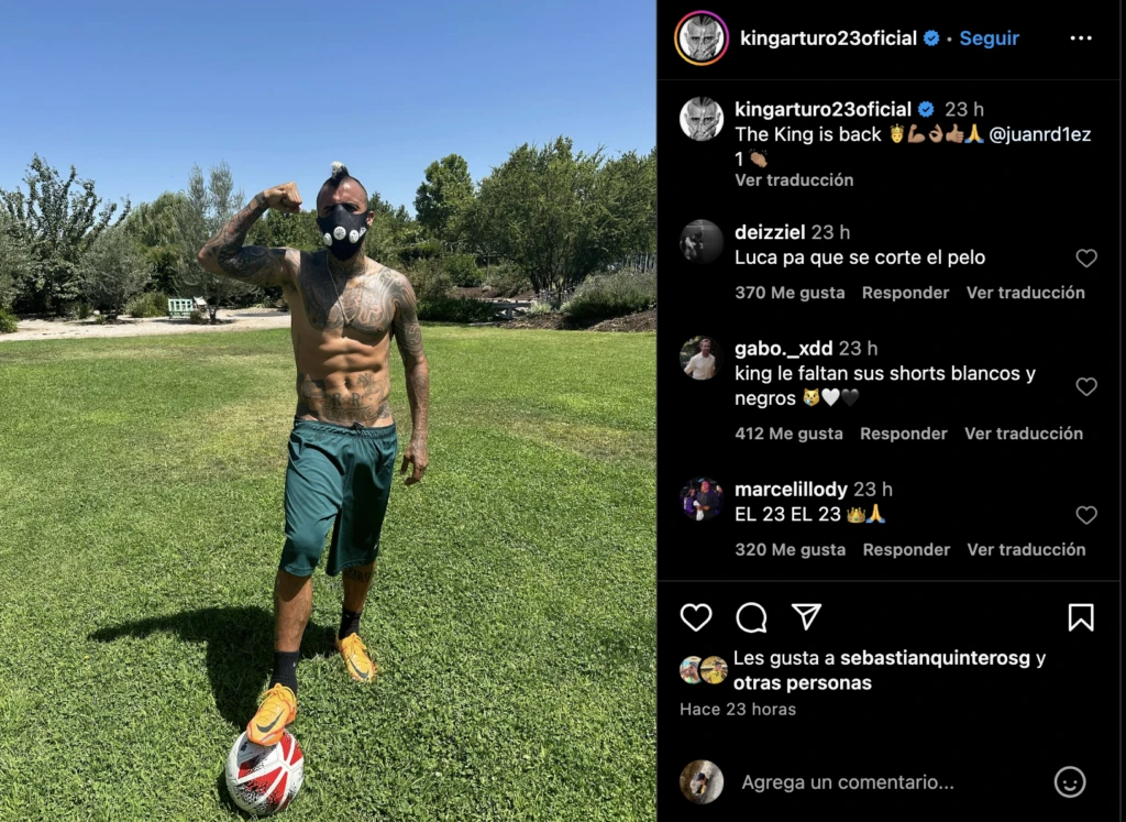 En medio de toda la incertidumbre, Arturo Vidal compartió una imagen en su cuenta personal de Instagram luego de un entrenamiento, acompañando la foto con el siguiente mensaje: “The King is back” (El Rey ha vuelto).