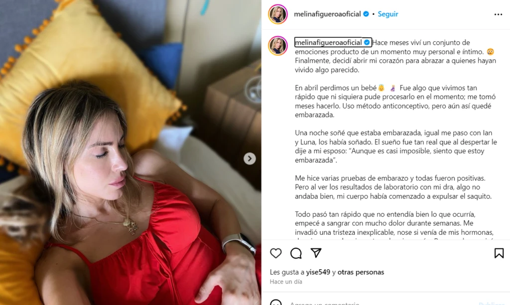 El triste relato de Melina Figueroa sobre cómo perdió su embarazo